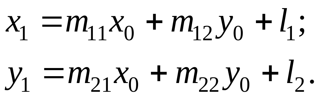 Если m11, m12, m21, m22, l1 и l2 – действительные (целые или вещественные), то такие преобразования называют аффинными.