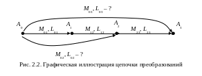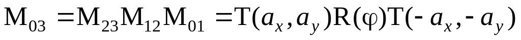Это прекрасная иллюстрация того, как сложное движение конструируют как последовательность элементарных движений, для каждого из которых составляют матрицу преобразования и результирующее преобразование получают как их произведение по правилу (2.7).