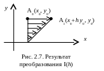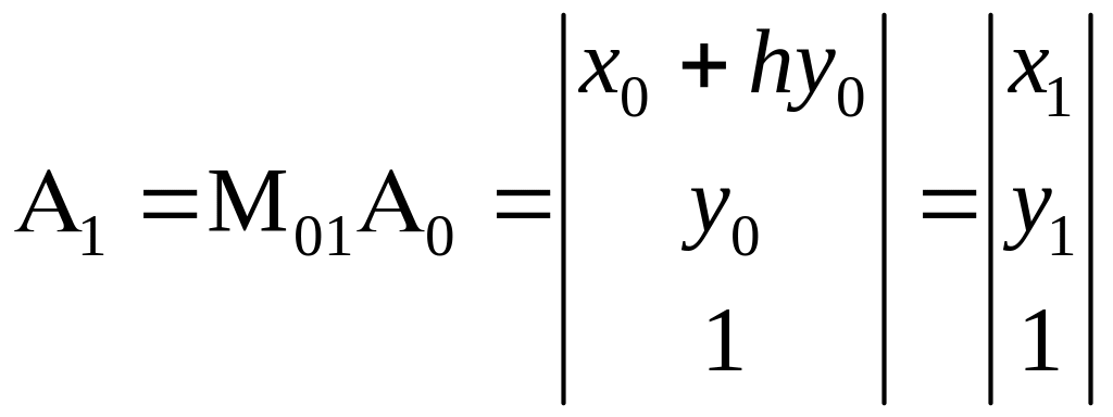 Здесь точка смещается вдоль оси x на величину, пропорциональную y0 и h. Рассматриваемую матрицу можно выделить как типовую элементарную, задающую преобразование сдвига в x направлении, как на рис. 2.7.