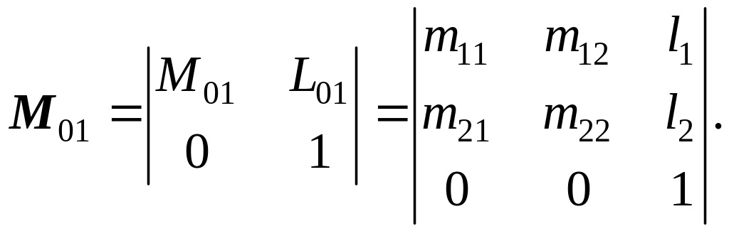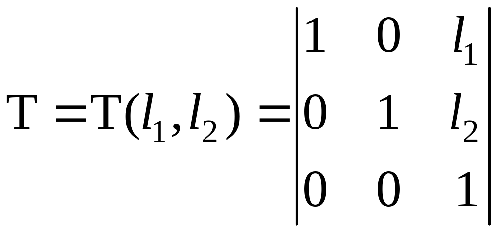 Рассматриваемую матрицу целесообразно выделить как типовую элементарную матрицу, задающую преобразование смещения и обозначать ее будем T или T(l1, l2) в зависимости от того, как это требуется из контекста, т.е.