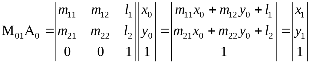 Полученный результат сравним с формулой (1) и убеждаемся, что это есть представление в однородной форме точки A1. Следовательно
