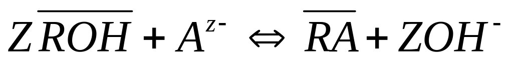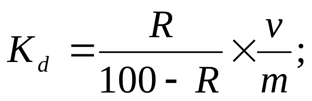 Из приведенных уравнений ионообменных реакций видно, что при использовании катионитов и анионитов в Н+ и ОН- - формах коэффициенты распределения ионов зависят соответственно от рН воды, т.е. от концентрации противоионов. На значения коэффициентов раздела влияет также концентрация главных ионов, которые составляют матрицу природной воды и которые могут быть конкурентами в реакциях ионного обмена при недостаточном избытке ионита. Кроме того, состояние равновесий (17), (18) зависит также от массы ионообменного сорбента, который содержит определённую «концентрацию» противоионов. Поэтому коэффициент разделения выражается формулой: