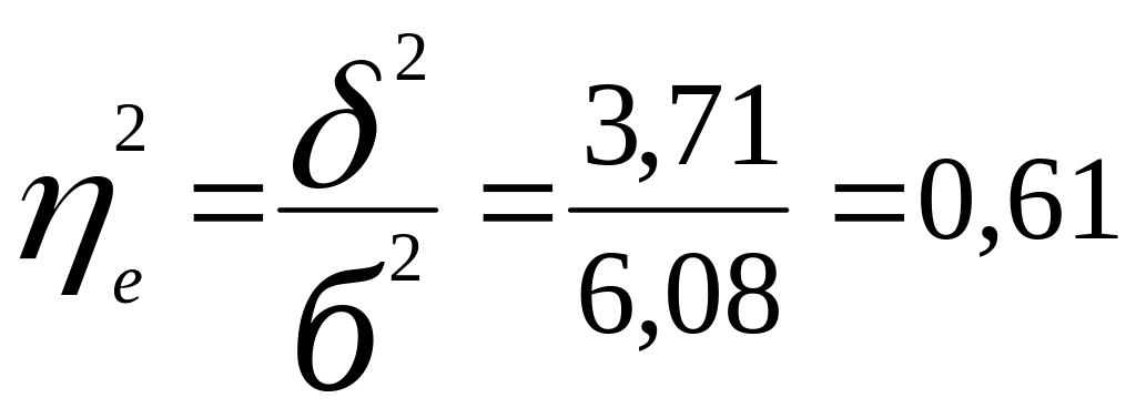 Значить на 61% варіація виробітку обумовлена зміною рівня кваліфікації, а на 39% - іншими причинами.