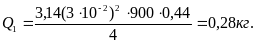 Масса заряда одного шпура при плотности заряжания 900 кг/м3