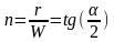 Показатель действия взрыва, равный отношению радиуса воронки к ее глубине, т.е.: