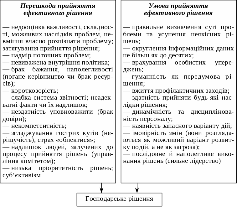 Прийняття ефективного рішення залежить також від наявності певних умов та усунення перешкод (рис. 1.2).