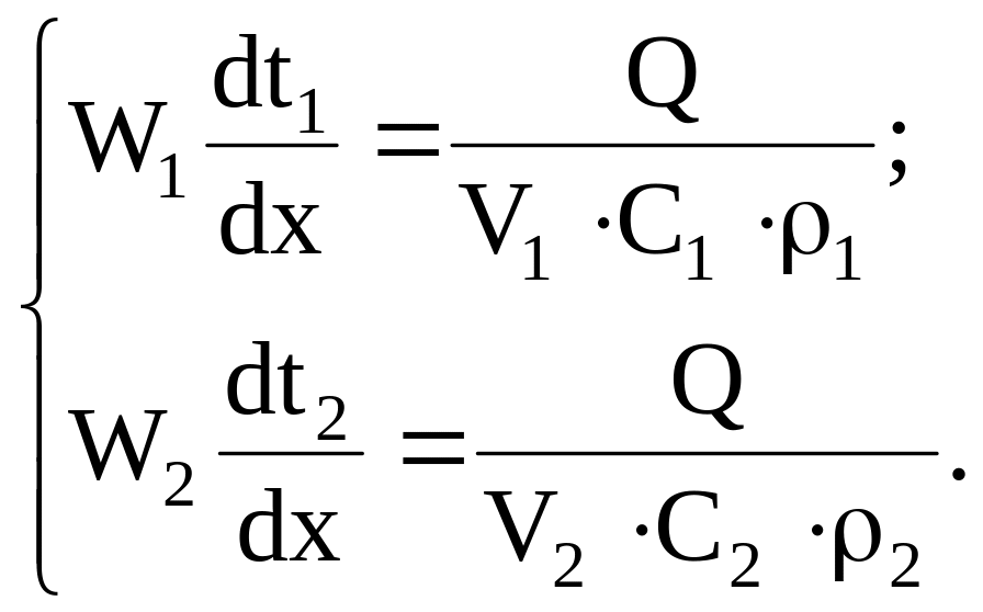 получим математическое описание теплообменника (для противотока):