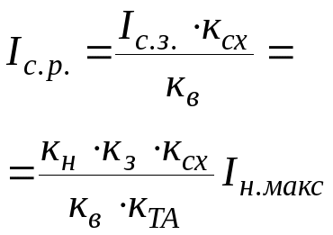 После расчета тока срабатывания защиты Iс.з., выполняется расчет тока срабатывания реле