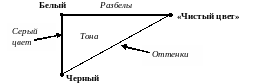 Во всех этих случаях получаются различные цвета одного и того же цветового тона, отличающиеся насыщенностью и светлотой.