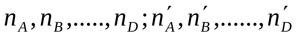 Для стану хімічної рівноваги, коли швидкість реакції по реагенту D рівна нулю (WD=0), рівняння (6.11) матиме вид: