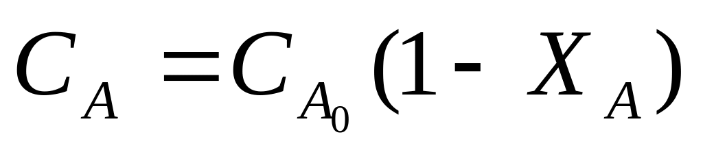 де СА0, ХА – початкова концентрація і ступінь перетворення речовини А.
