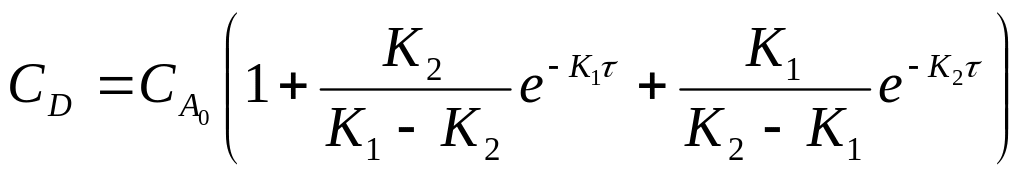 Враховуючи (6.22)….(6.24), знаходимо вираз, що описує зміну концентрації продукту D під час протікання реакції