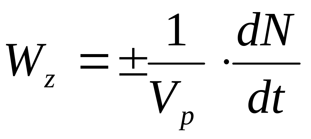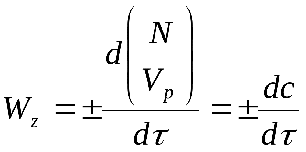 Швидкість процесу, що протікає в кінетичній області, тобто швидкість хімічної реакції WZ(у кмоль/м3•с або кмоль/м2•с), виражається рівняннями: