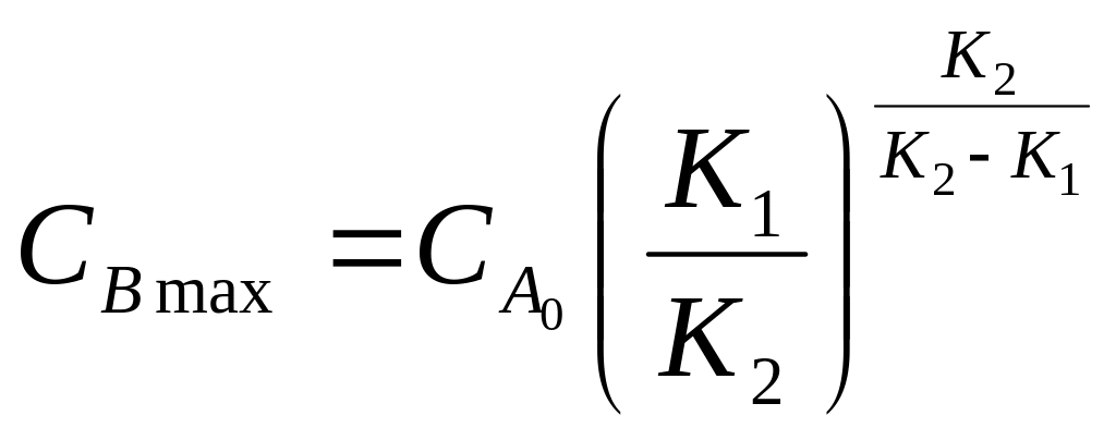 З рівнянь (6.25) і (6.27) знаходиться чисельне значення максимальної концентрації В :