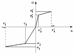 - характеристики ветви сжатия являются отрицательными числами; - участки задаются слева направо (сжатие-растяжение) ; Количество i-точек не ограничено. Алгоритм: если значение обобщенной деформации выходит за пределы заданной ломаной, моделируется выключение материала (Ei = 1) элементарной площадки из работы сечения. Ограничения: - горизонтальные участки задавать запрещено. Закон с индексом 14 может быть применен для любого материала, как основного, так и армирующего. |
