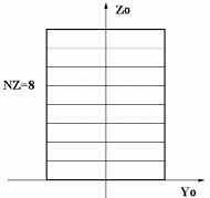 NZ1 - число участков дробления нижней полки по вертикальной оси; NZ2 - число участков дробления стоек по вертикальной оси; NZ3 - число участков дробления верхней полки по вертикальной оси; NYI - число участков дробления нижней полки по горизонтальной оси; NY2 - число участков дробления стоек по горизонтальной оси; NY3 - число участков дробления верхней полки по горизонтальной оси. По умолчанию: NZ1 = 3, NZ2 = 5, NZ3 = 3, NY1 = 5, NY2 = 2, NY3 = 5 |