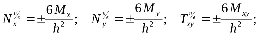 Осевые напряжения вычисляются для нижней и верхней поверхностей: