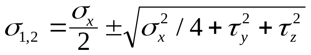Главные напряжения в сечениях стержней вычисляются по формуле: