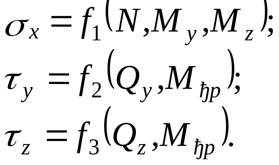 где x , y , z нормальное и касательные напряжения в характерных точках сечения стержня.