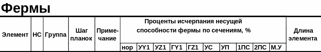 Если в ферменных элементах для расчета был использован минимальный радиус инерции, тот в графе «Примечание» записывается слово «минІ».