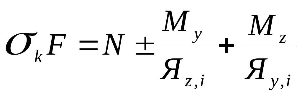 где: Яyi и Яzi - ядровые расстояния в сечении стержня (i=1,2).