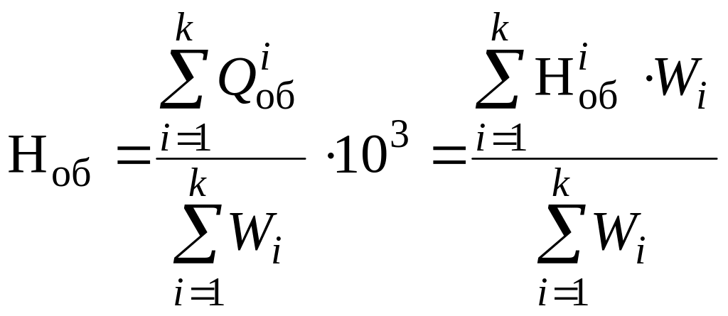 Полная (суммарная) работа обогрева зданий в целом по предприятию, учреждению определяется как сумма работ обогрева всех отдельных зданий: