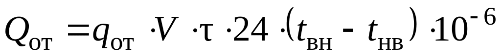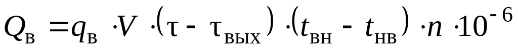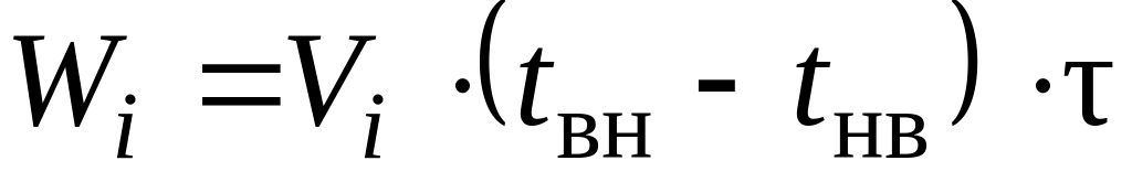 Работа обогрева зданий Wi (тыс. м3сутС) – это работа систем отопления и вентиляции по созданию комфортных условий в здании определенного объема, совершаемая за определенный период в определенных климатических условиях [18]: