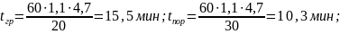 Определяю время движения автосамосвала в груженом и порожнем состоянии: