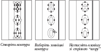 Ви можете також змінювати форму контурів, використовуючи інструмент Часткове виділення (Direct-selection) для виділення сегментів або вузлових крапок в контурах і переміщуючи їх.