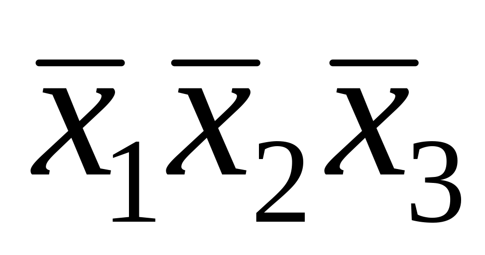3. По набору значений переменных выбранной строки формируем конъюнкцию всех аргументов с соблюдением следующего правила: если i-я компонента набора равна 0, то i-я переменная входит в конъюнкцию с инверсией, иначе – без инверсии. Полученную конъюнкцию добавляем в формулу как очередное слагаемое. Идем в п. 2.