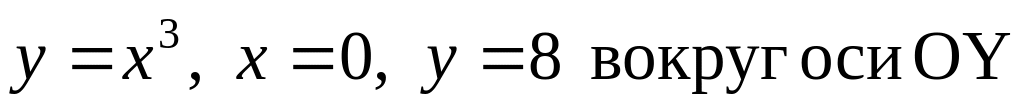 3. Определить объем тела, образованного вращением фигуры, ограниченной линиями: