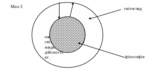 Поняття “світогляд” дає можливість краще зрозуміти що таке філософія, яке її покликання, тобто предмет і функції. Разом з тим, світогляд охоплює ширше коло явищ, ніж поняття філософії. Їх співвідношення схематично можна представити так: