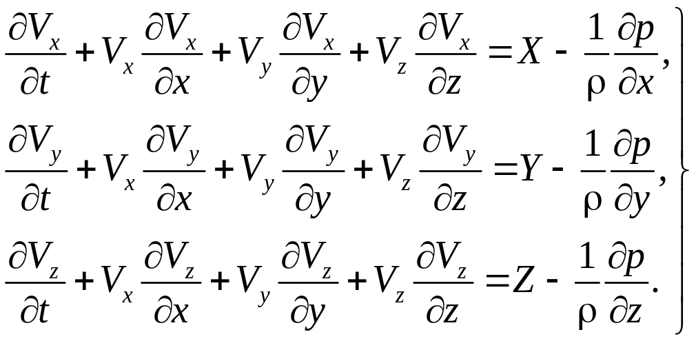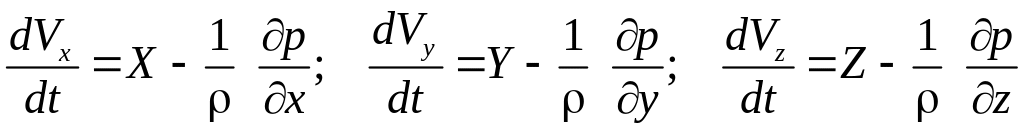 Применив аналогичную запись для других проекций, получим дифференциальные уравнения Эйлера в развернутом виде: