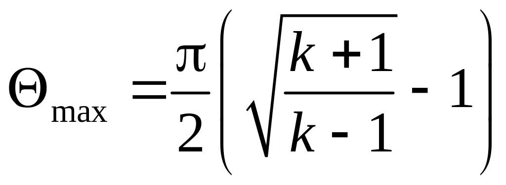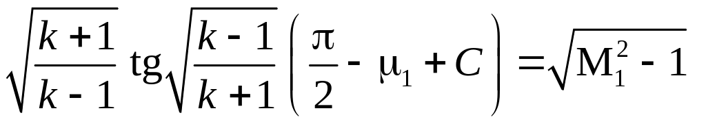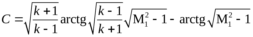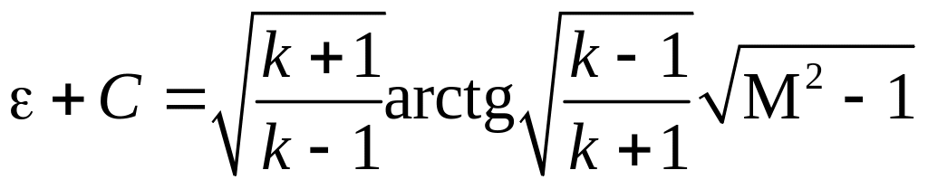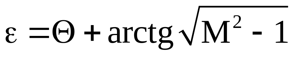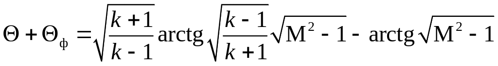 Тогда зависимость угла поворота потока от числа Маха примет следующий вид: