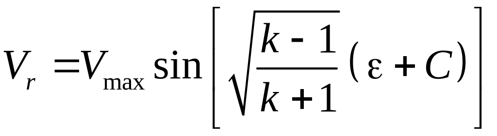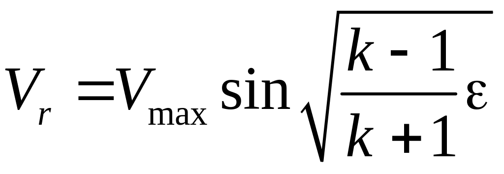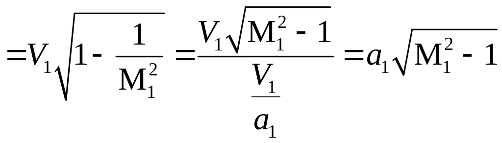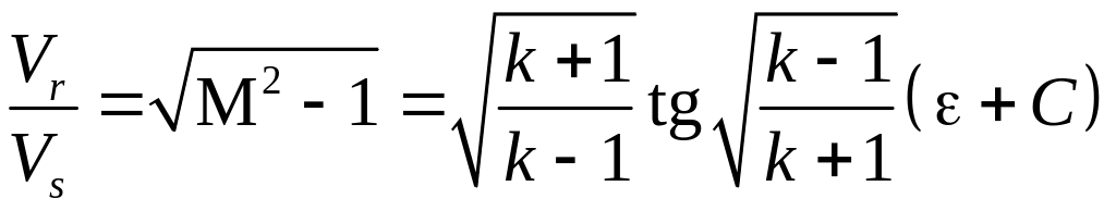 Установим зависимость между углом поворота потока и числом М. По аналогии с выражением (5.27) найдем отношение скоростей для промежуточной характеристики ОЕ: