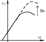 Рис. 8.22. Влияние числа Рейнольдса на характеристики профиля: