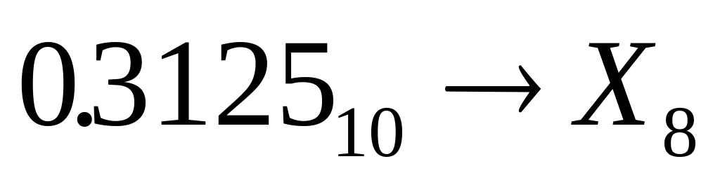 Перевод правильной конечной дроби из десятичной системы счисления в p-ичную осуществляетсяпоследовательным умножением на основание той системы, в которую она переводится до тех пор, пока дробная часть произведения не станет равной нулю, или не выделится период. При этом умножаются только дробные части. Дробь в новой системе счисления записывается в виде последовательности целых частей произведений, начиная с первого.
