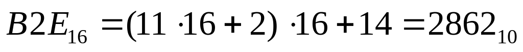 При вычислении десятичного значения р-ичного целого числа по развернутой форме с использованием калькулятора удобно пользоваться схемой Горнера, которая позволяет минимизировать арифметические операции и исключить возведение в степень.