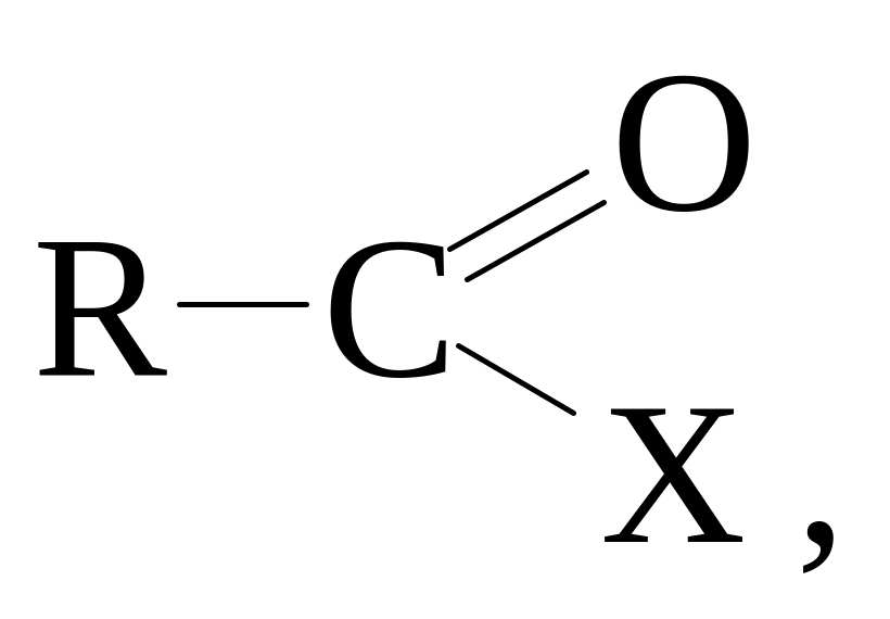 где X = Hal (галогенангидриды), OCOR (ангидриды), OR (сложные эфиры), NH2, NHR, NR2 (амиды).