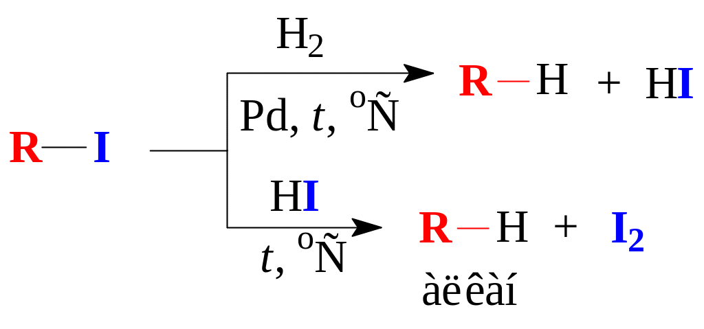 б) восстановление галогеналканов каталитическим гидрированием или иодоводородом (для иодалканов) - универсальный способ получения алканов
