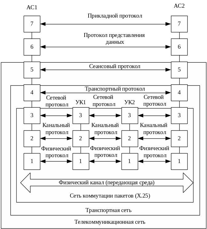 - •6.2.2. Уровни информационного взаимодействия в сети х.25