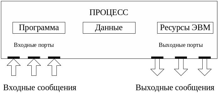 Сообщение ‑ это последовательность данных, имеющих законченное смысловое значение. Ввод сообщений в процесс и вывод из процесса производится через логические (программно ‑ организованные) точки, называемые соответственно входными и выходными портами.
