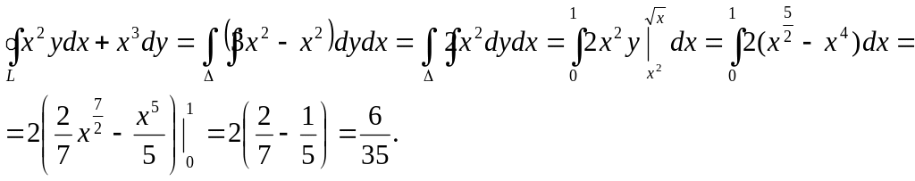 Решим пример, рассмотренный выше, воспользовавшись формулой Остроградского – Грина.