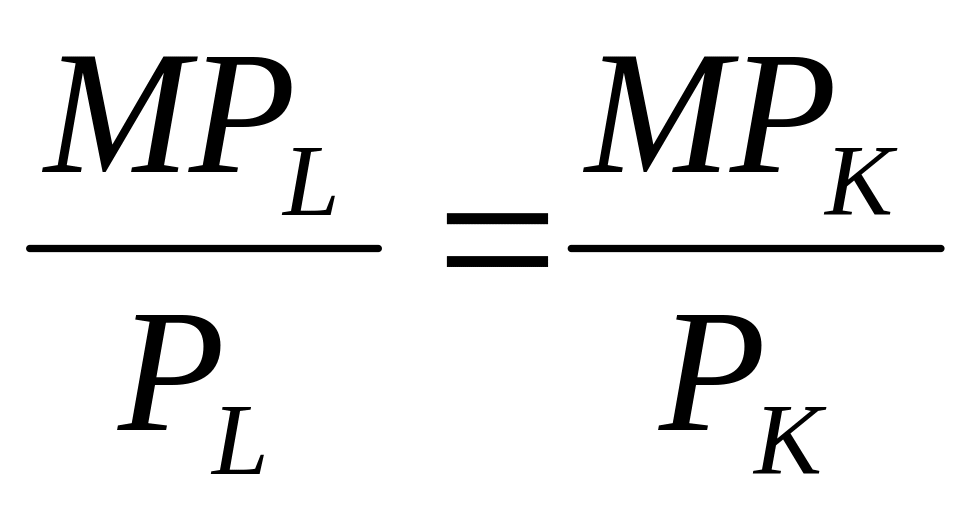 Смысл такого выбора факторов производства – денежная единица, затраченная на каждый ресурс, приносит фирме одинаковый доход.