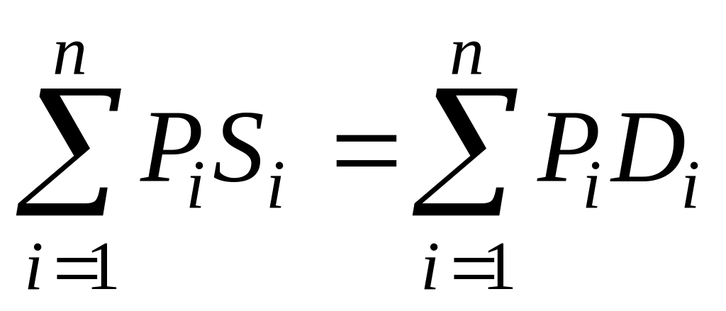 В условии общего равновесия стоимость всех товаров на стороне предложения равна стоимости всех товаров на стороне спроса – закон Вальраса: