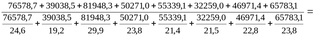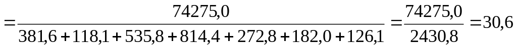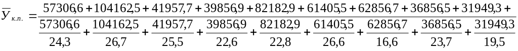 Так как валовой сбор известен, а величина посевных площадей – нет, но может быть найдена путем деления валового сбора по конкретному предприятию на урожайность, выращенных им зерновых культур, и суммирования полученных результатов, то для расчета средней урожайности по группе предприятий используется формула средней гармонической взвешенной (правило 2).