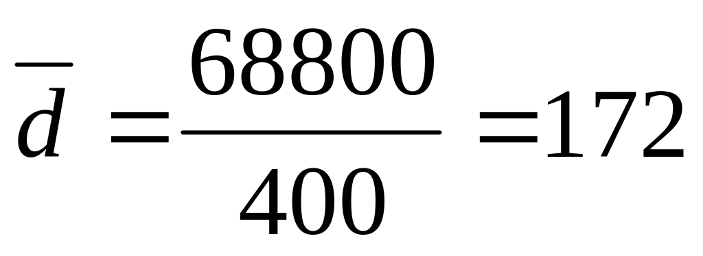 По формуле 5.5 размах вариации R = 2000 – 800 = 1200 грн., т.е. разница между максимальным и минимальным уровнем оплаты труда на предприятии составляет приблизительно 1200 грн. На первый взгляд это достаточно большой разброс в оплате труда работников предприятия, т. е. исследуемая совокупность не однородна по оплате труда. Данное предположение подтвердится или нет последующими расчетами. Отметим, что верхнюю границу последнего открытого интервала определили исходя их величины смежного с ним интервала, которая равна 200 грн. (1800 - 1600), 1800 + 200 = 2000 грн.