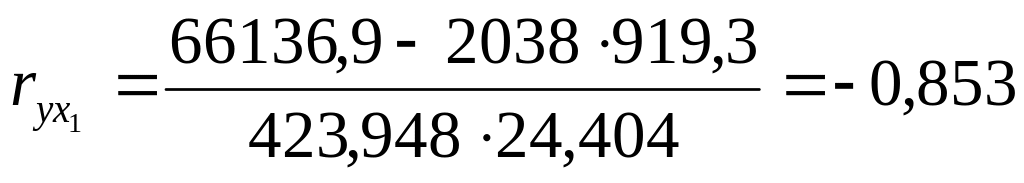 Преобразовав формулу 5.14 и используя данные таблицы 7.17, получим средние квадратические отклонения факторных признаков, а также среднее квадратическое отклонение результативного признака: