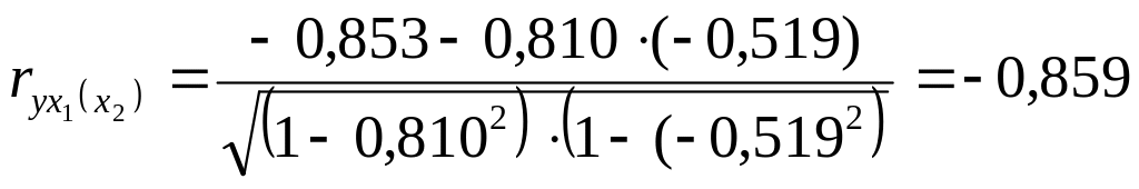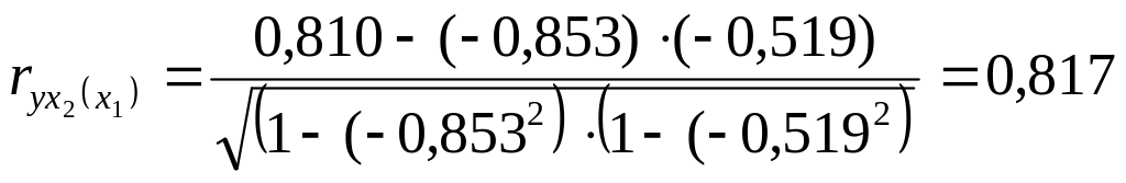 На основе парных коэффициентов корреляции по формулам 7.48 и 7.49 рассчитаем частные коэффициенты корреляции первого порядка, отражающие связь каждого фактора с исследуемым показателем (средней себестоимостью 1 т продукции) в условиях комплексного взаимодействия факторов: