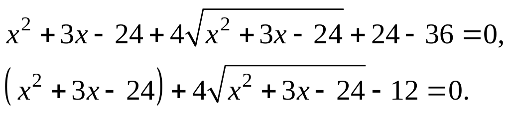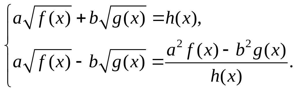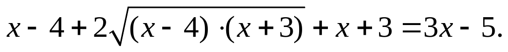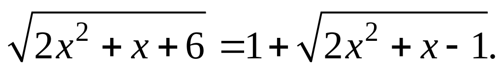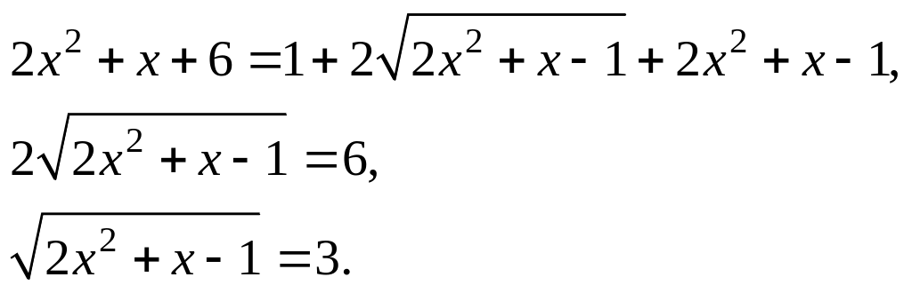 1-й способ. Необходимо возвести уравнение (5.7) в квадрат. В определенных случаях следует один из корней перенести в правую часть уравнения. После упрощения полученное уравнение возводят в квадрат еще раз.